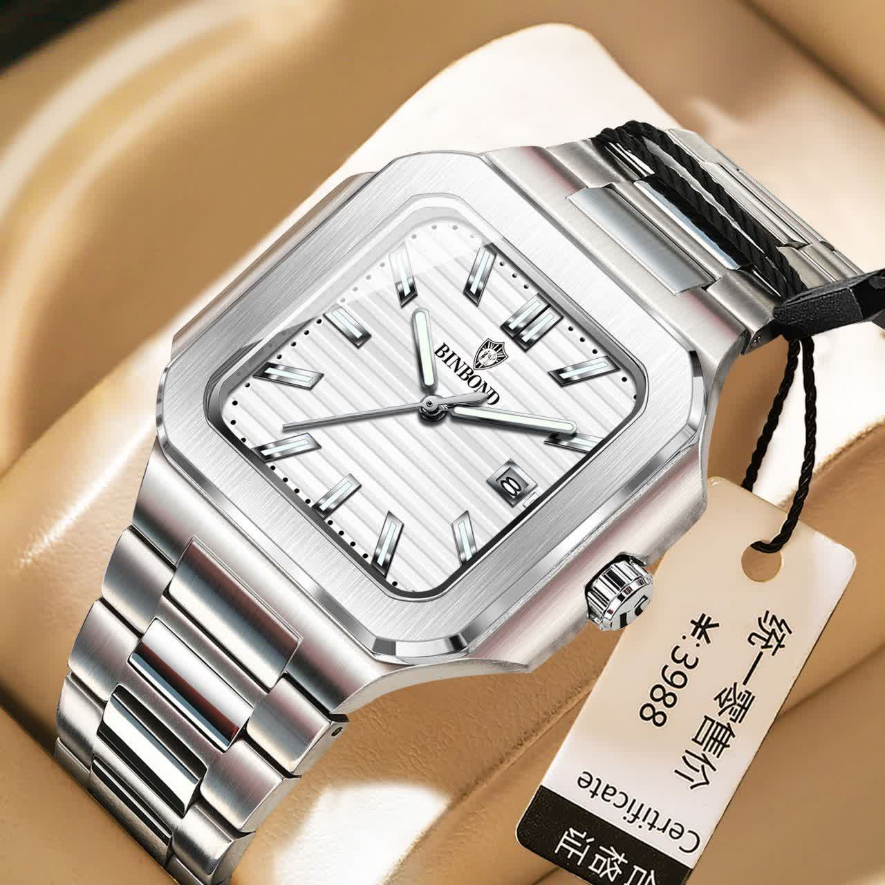 ساعت مچی مردانه ☑️BIN BOND 《highe quality》 🔥Original watch ⌚️بین باند مدلی نو مناسب آقایان مقاوم دربرابر آب برندشرکتی اوریجینال کارت گارانتی دارای روز شمار ضخامت ۱۱میل قطر صفحه ۴۴میل ایام هفته بند استیل فولاد شیشه سافایر شب نما قفل دو پروانه موتور کوارتز