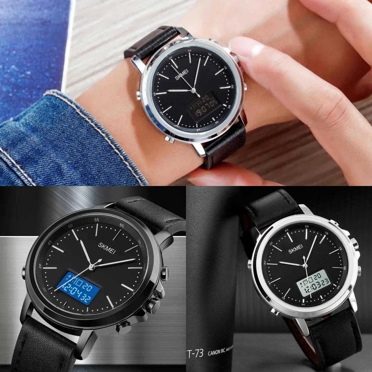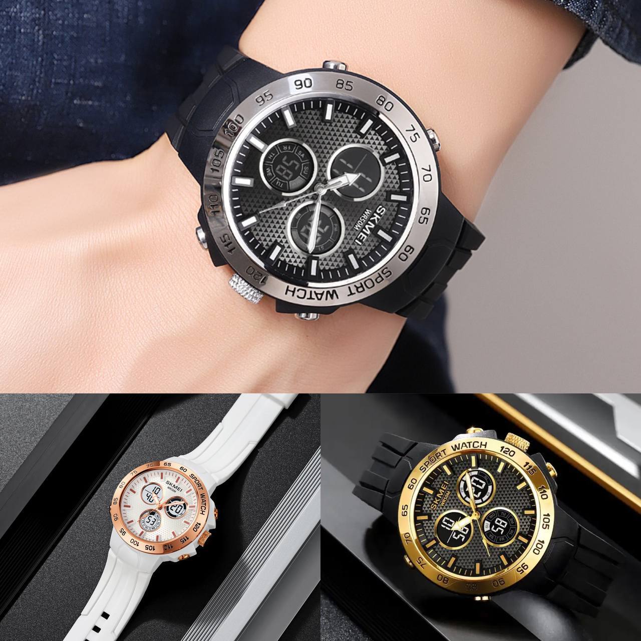 ساعت مچی دیجیتال آنالوگ Skmei ☔️ ضد آب، بدنه استیل 👌🏻دارای زنگ، کرنومتر و نور زمینه 👌🏻کیفیت عالی، موتور ژاپن ✅ قیمت حراج: ۱۴۸۹ تومان ⛔️ قیمت قدیم: ۱۷۵۹ تومان کد محصول: 709 رنگبندی: مشکی، نقره ای، رزگلد، طلایی