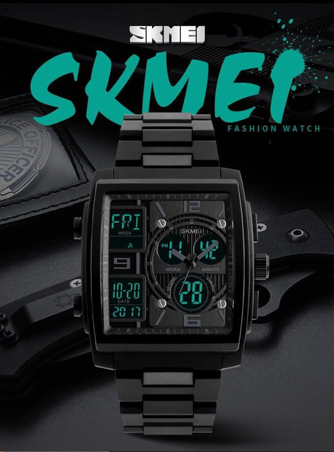 ساعت مچی مردانه دوزمانه Skmei 👌🏻کیفیت عالی، ضدآب، رنگ ثابت 👌🏻همه موتورها فعال، کرنومتر، نور زمینه، آلارم