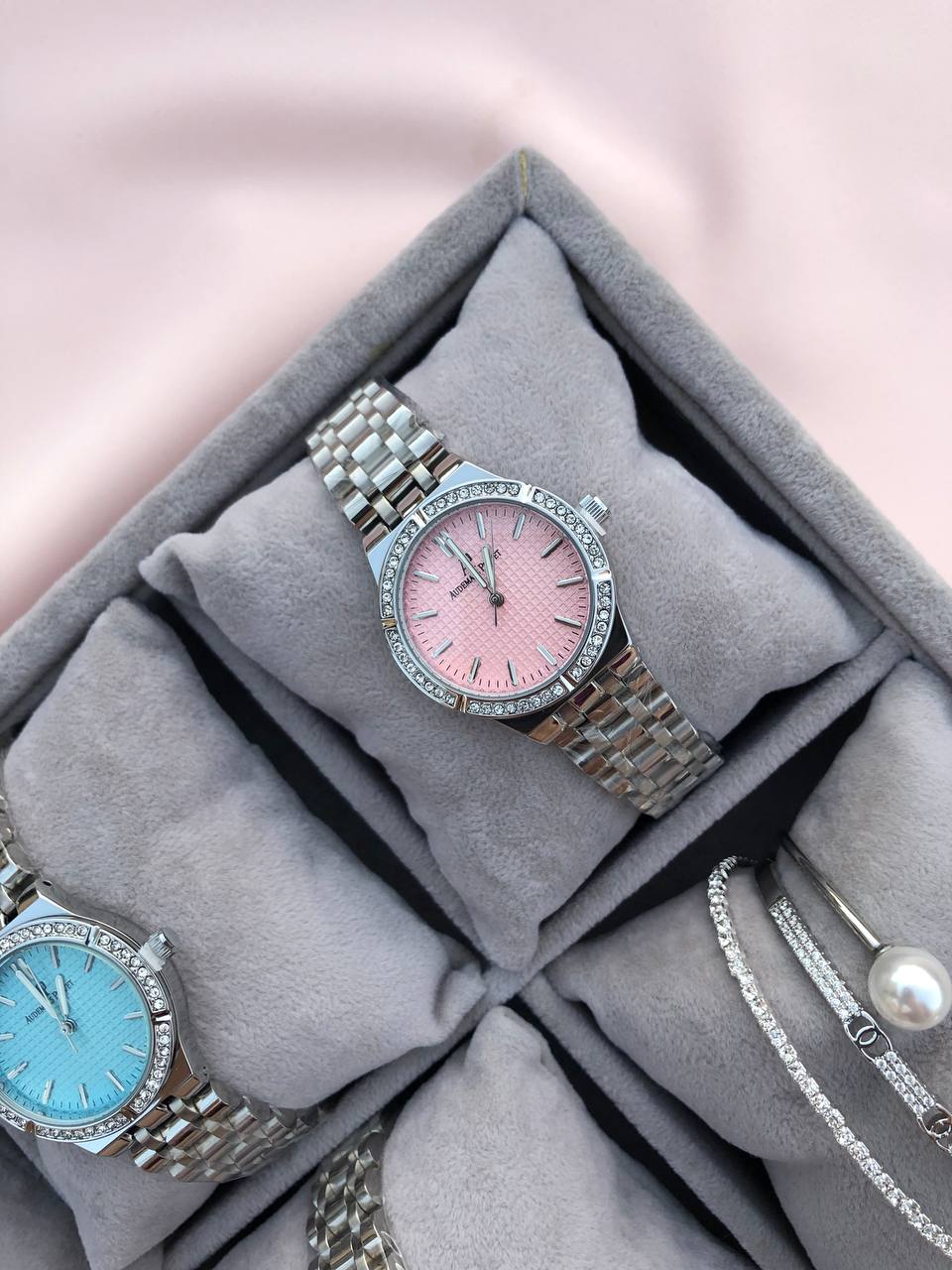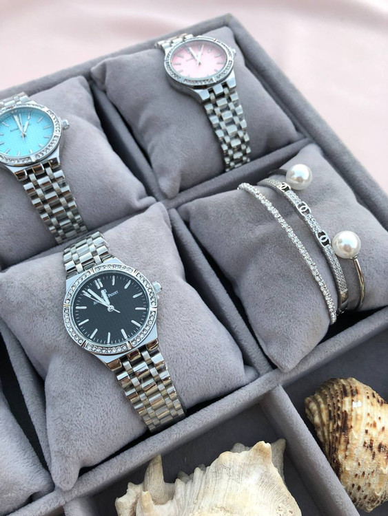 ساعت مچی زنانه ای پی زنونه موتور ژاپن دور نگین پرسی قفل استیل پروانه ای بند ژوبیلی نرم