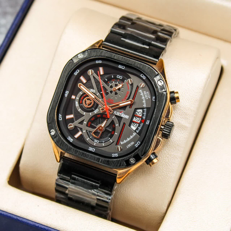ساعت مچی مردانه FLEET SQUAD ✅موتور ژاپن، هر سه موتور فعال ✅کرنوگراف، تقویم دار ✅بند استیل، قفل فشاری، رنگ ثابت