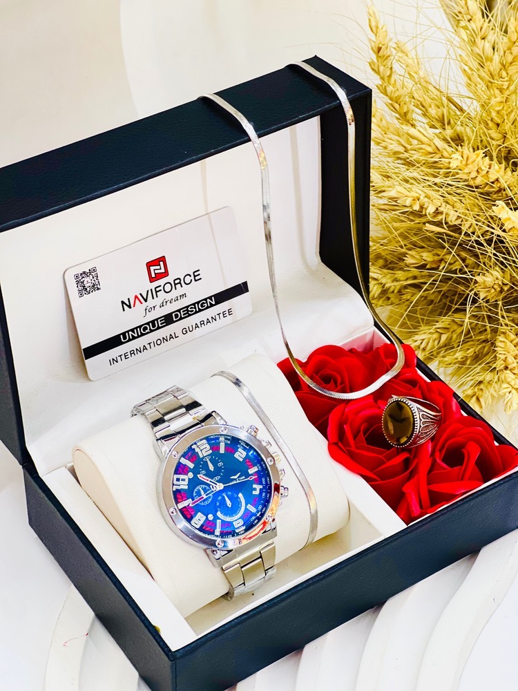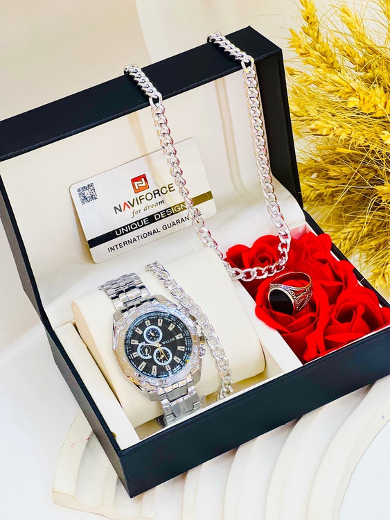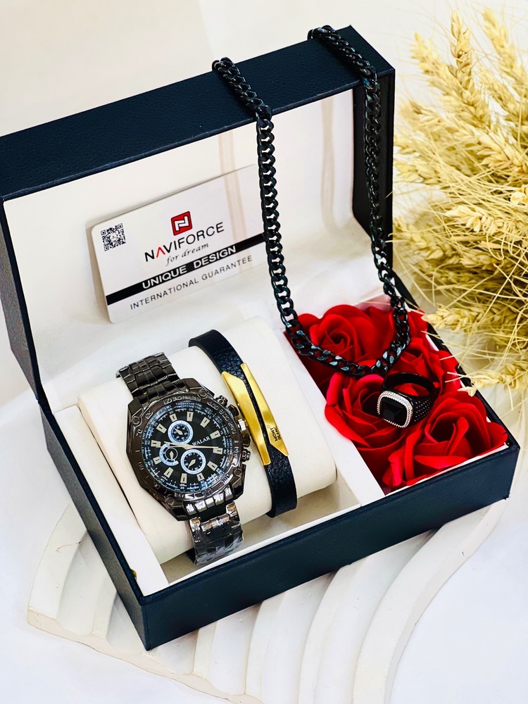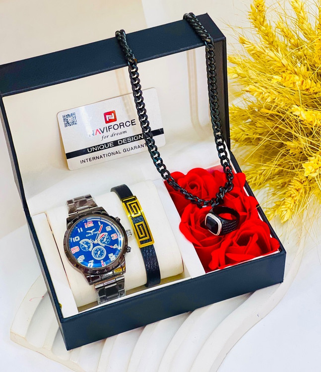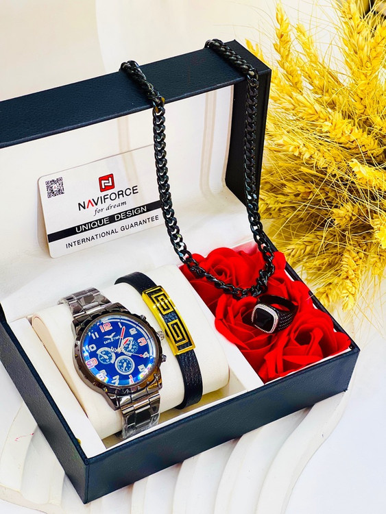 کالکشن جدید مردانه همراه ساعت والار دستبند چرم گردنبد المنیوم انگشتر استیل