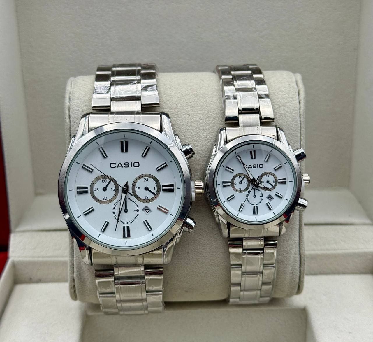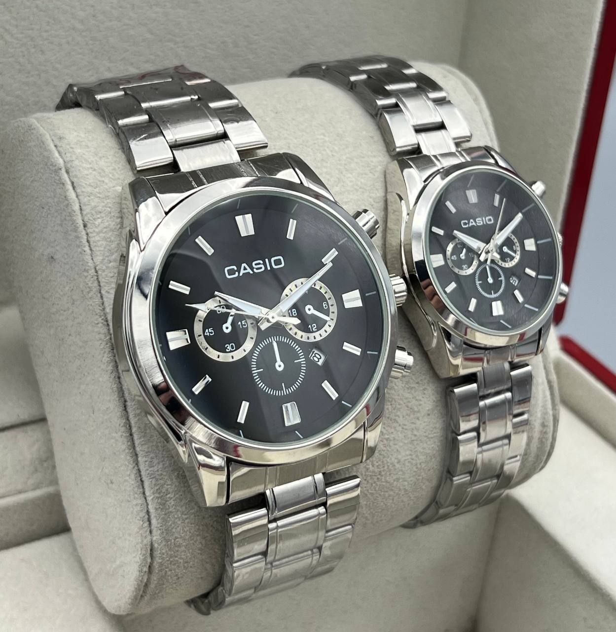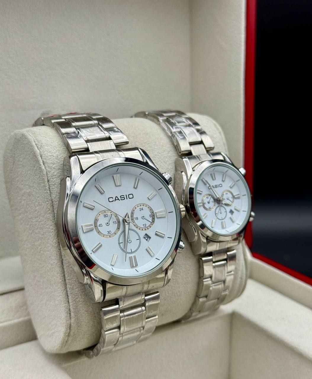 ست ساعت کاسیو ست ✔️زنانه و مردانه ✔️طرح 3موتوره ✔️دارای تقویم روز ✔️بند استیل ✔️قفل کلیپسی ✔️کیفیت عالی ✔️ارسال با جعبه ی کادویی