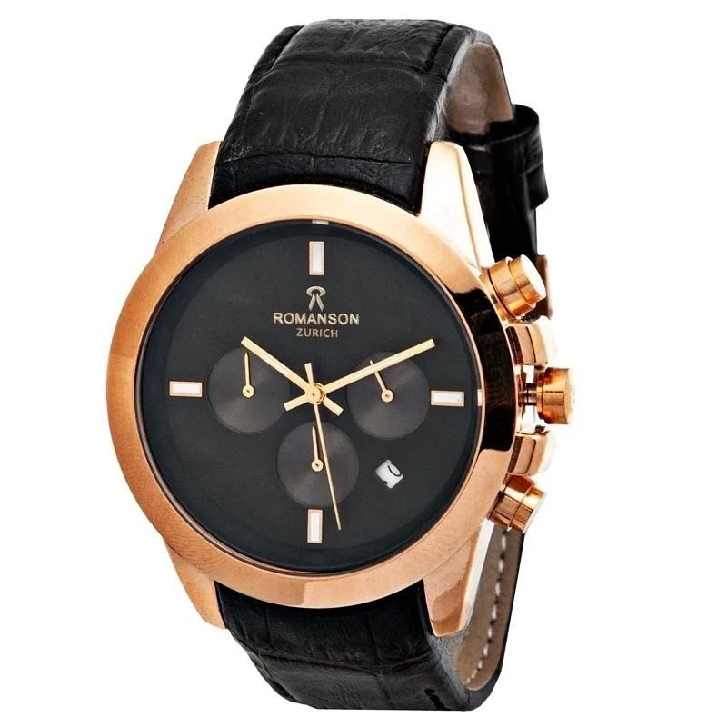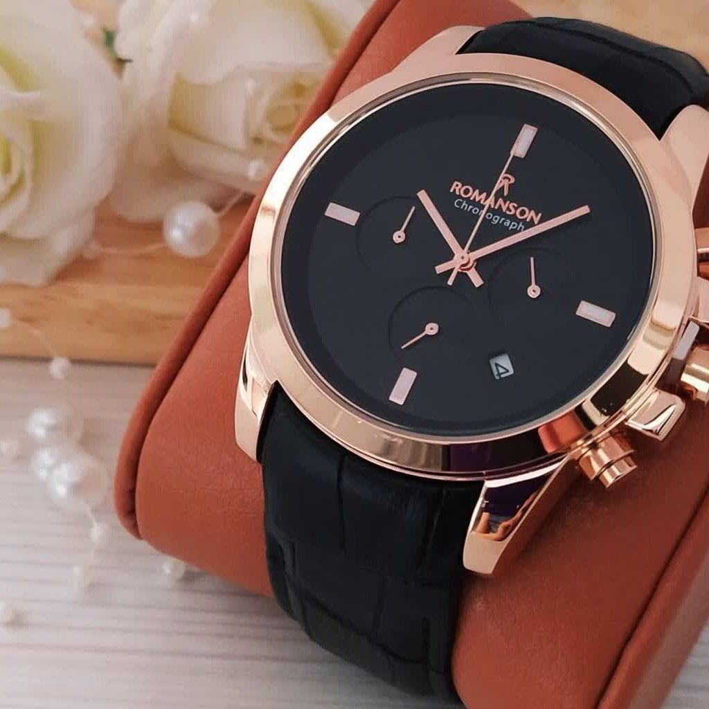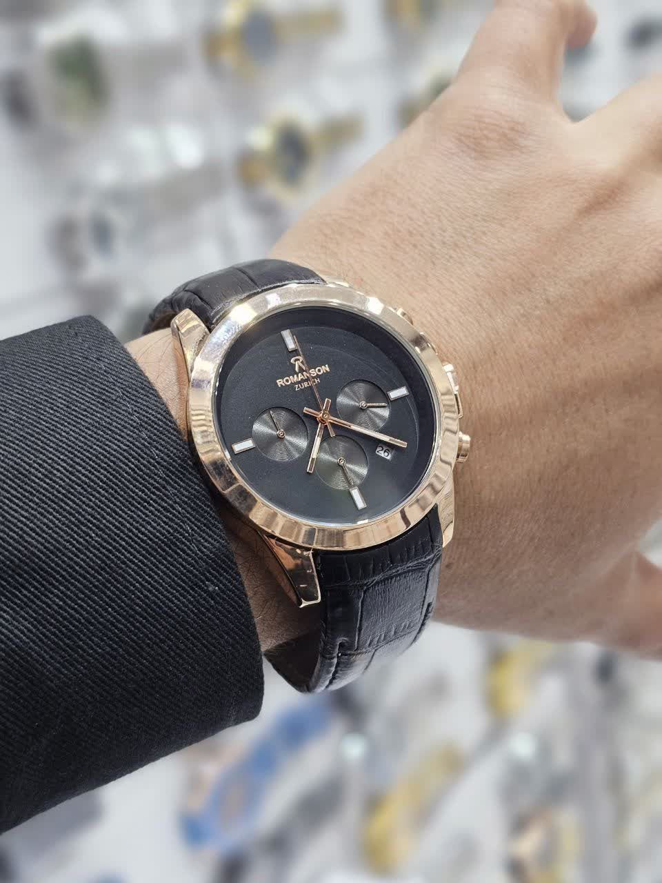 ساعت مچی مردانه ROMANSON          Zurich High quality👌 ♧ مردونه رومانسون زوریخ سفارشی با کیفیت عالی سه موتور فعال دارای روز شمار قفل کلیپسی کرنوگراف ضدآب در حد دست شستن بند چرم اصل فیکسی موتورکوارتز قاب رنگ ثابت طرح کوکو به همراه جعبه