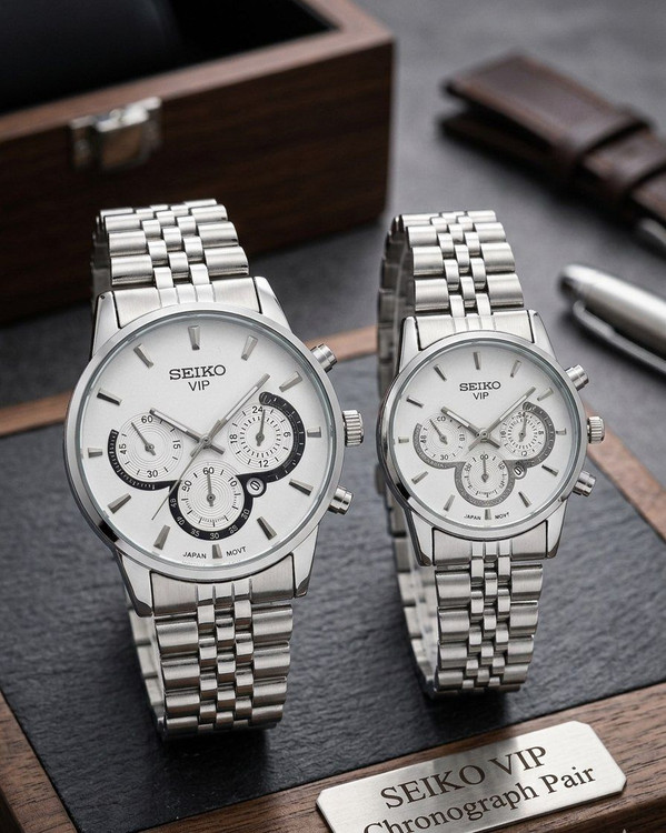 ساعت ست زنانه و مردانه ☑️seiko new collection ♤مردونه سیکو vip دارای روزشمار طرح کرنو گراف قفل کلیپسی موتورکوارتز بند استیل