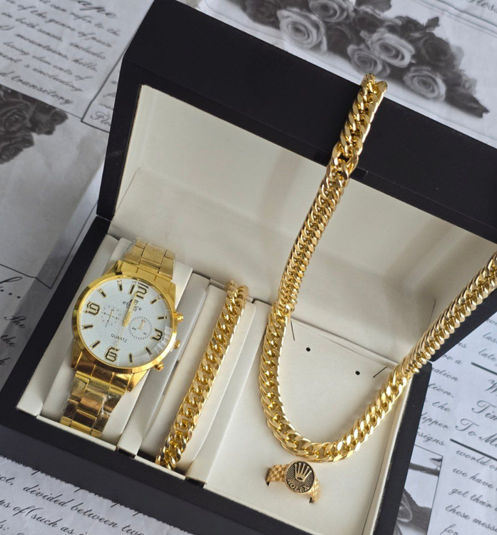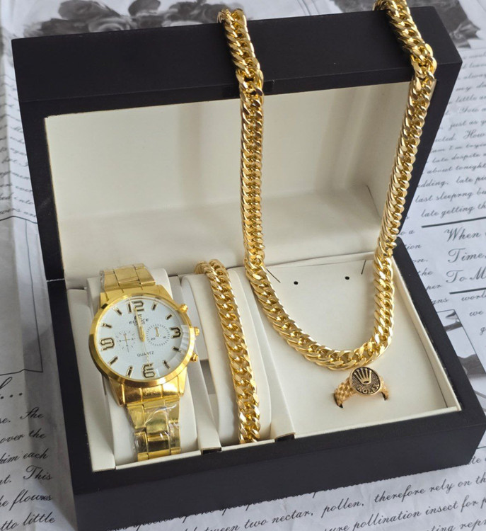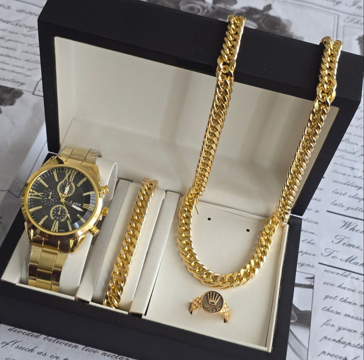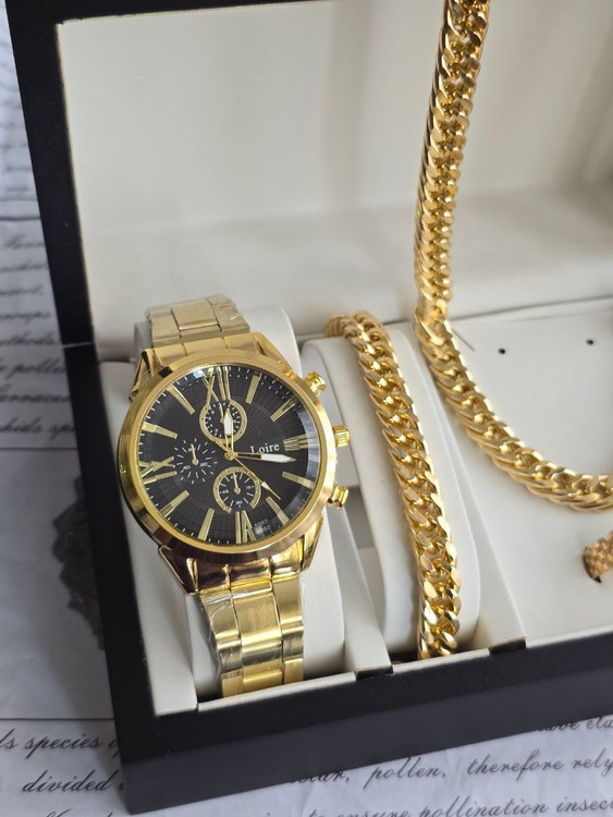 ست کامل مردانه برند Loire با طراحی طلایی و درخشان، گزینهای شیک و خاص برای آقایانی است که به استایل لوکس و متفاوت اهمیت میدهند. ساعت با صفحه مشکی و بدنه طلایی در کنار دو دستبند طلایی، ترکیبی جذاب و هماهنگ ایجاد کرده که بهویژه برای استفاده در مجالس رسمی یا مهمانیها مناسب است. با این حال، برند Loire جزو برندهای نوپا یا کمتر شناختهشده در بازار جهانی محسوب میشود و ممکن است کیفیت متریال یا دقت موتور ساعت در حد برندهای معتبر نباشد. این ست بیشتر از نظر ظاهری و استایل جذاب است تا عملکرد حرفهای.
