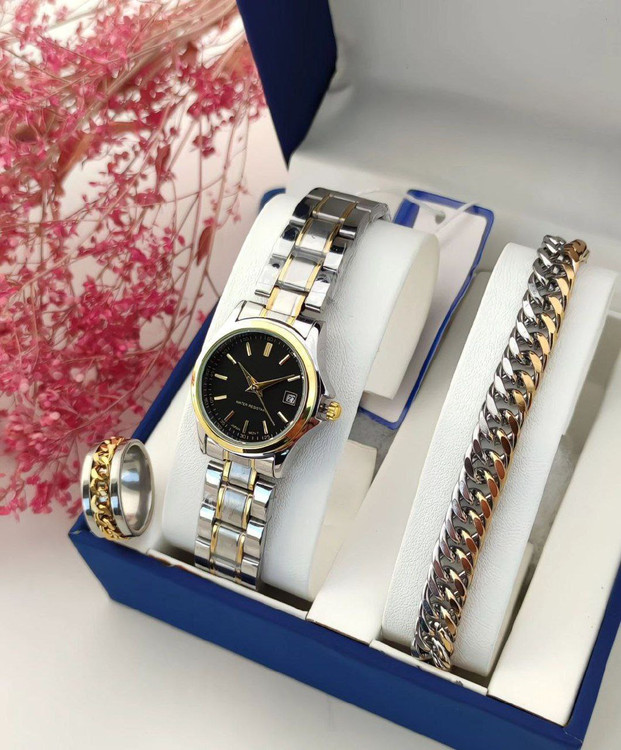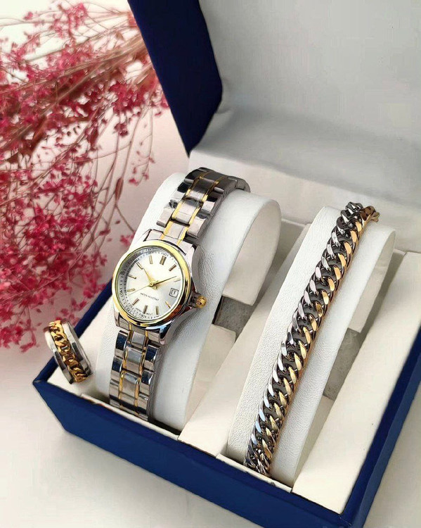 👚نام : پک زنانه یا مردانه ساعت کاسیو بنداستیل همراه با دستبند کارتیر دورنگ و حلقه زنانه یا مردانه