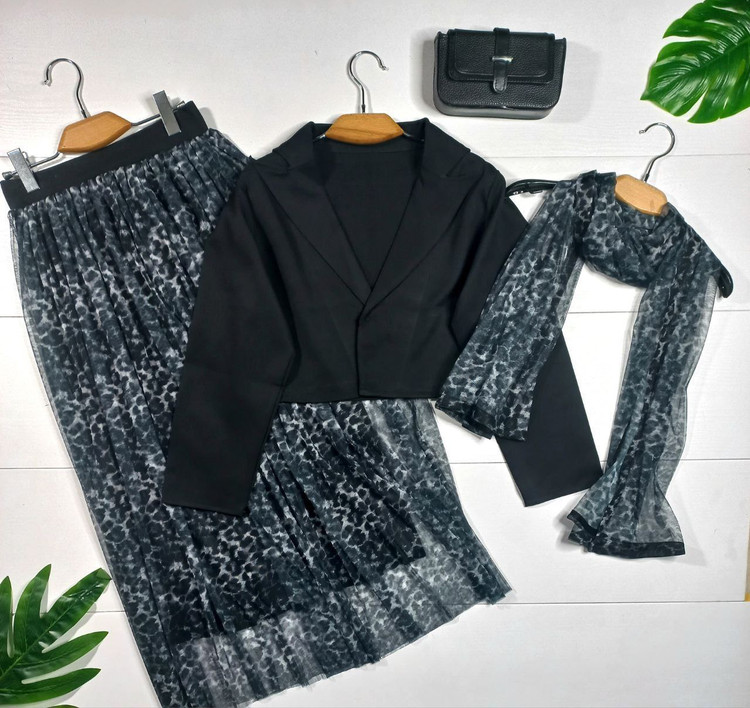 ست سه تیکه کت و دامن و شال شیک زنانه