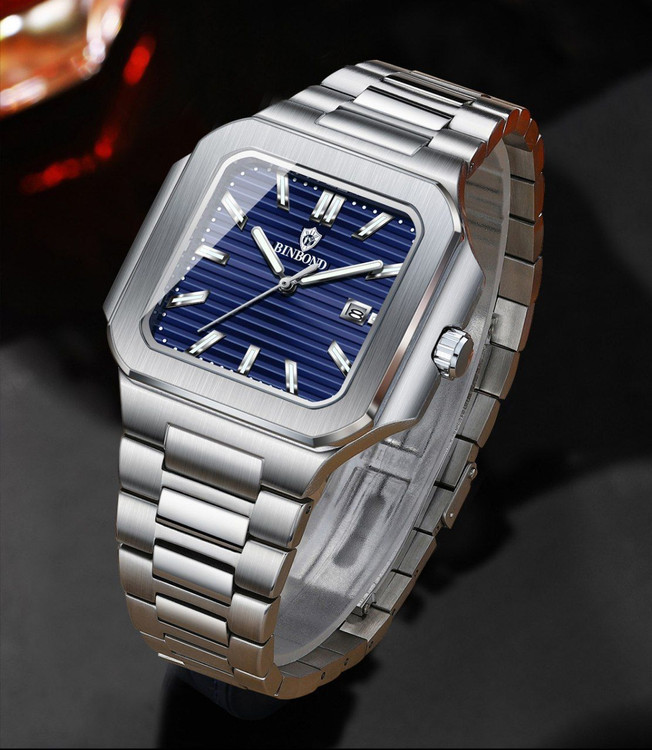 مقاوم دربرابر آب برندشرکتی اوریجینال کارت گارانتی دارای روز شمار ضخامت ۱۱میل قطر صفحه ۴۵میل بند استیل فولاد شیشه سافایر شب نما قفل دو پروانه موتور کوارتز