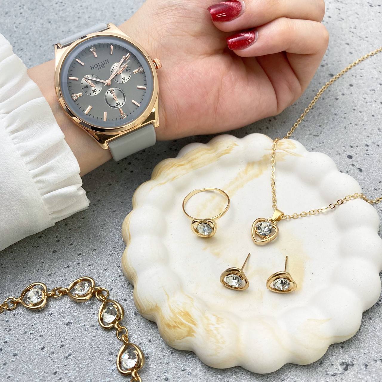 ست دخترانه کامل (ساعت+دستبند+ گردنبند+ گوشواره+ انگشتر💍)