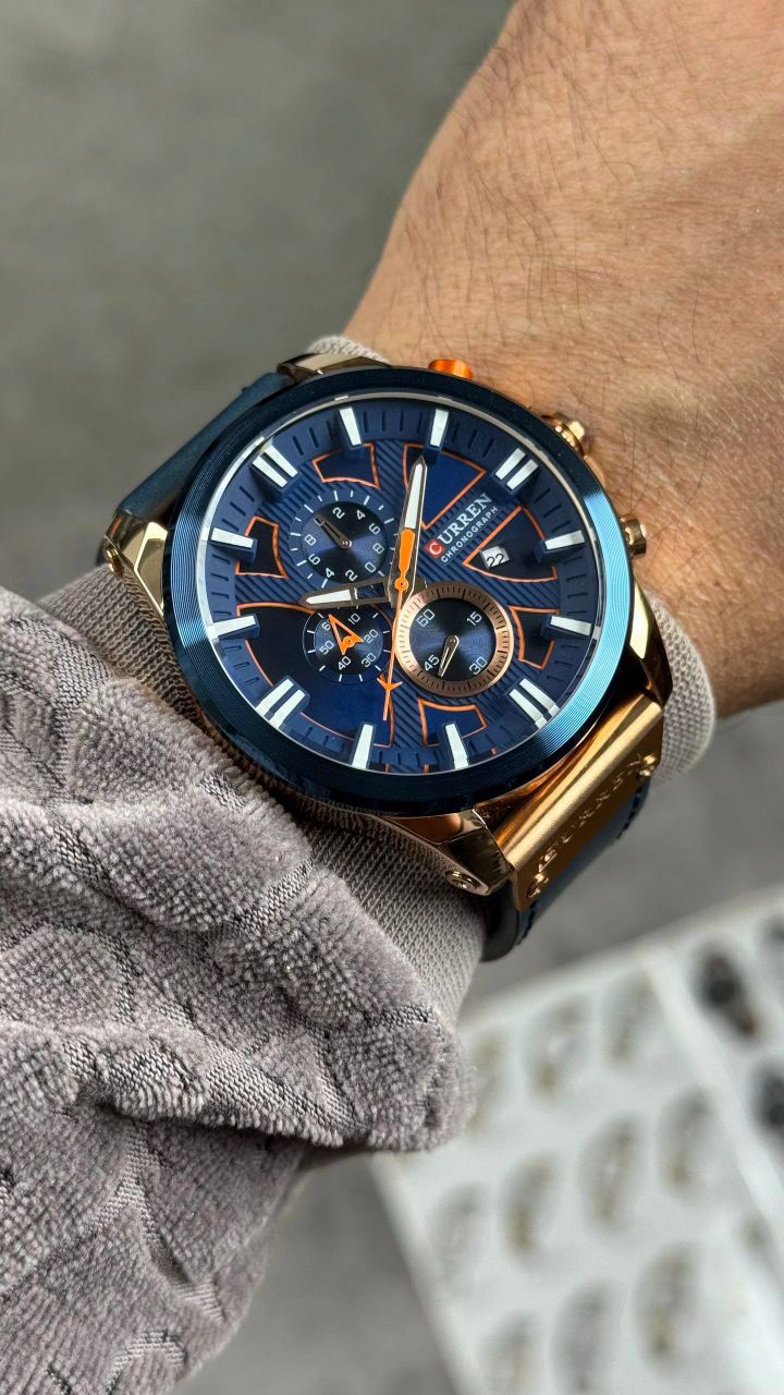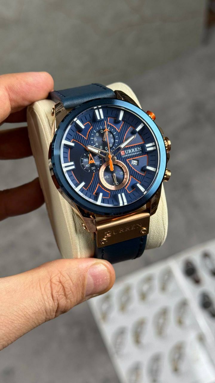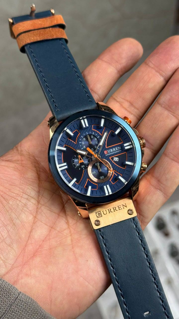قطر ۴۵ میلی متر رنگ ثابت ضدآب قاب استیل بند چرم شیشه ضدخش روز شمار دارد ضدآب 3ATM باکس اصلی