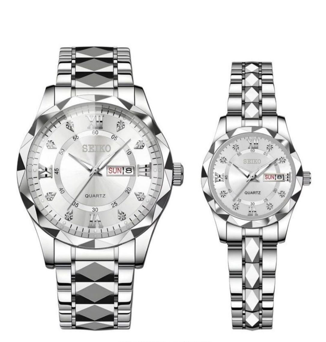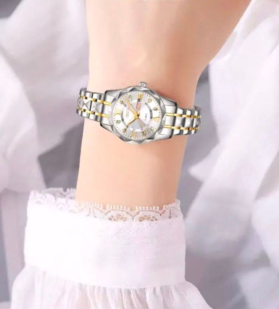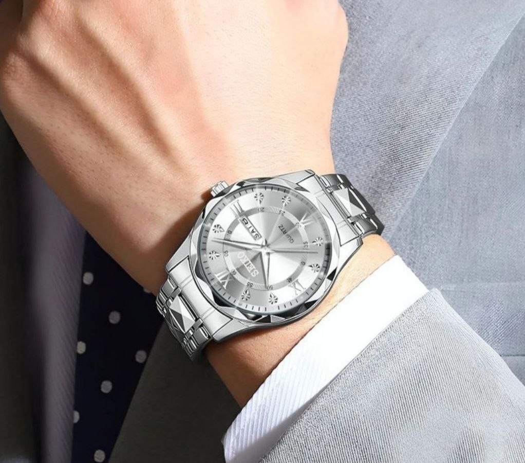 موتور تایوان درجه A++ دارای روزشمار ایام ماه و هفته بند استیل طرح الماس تراش شیشه کریستال سافایر قفل کلیپسی ضدآب