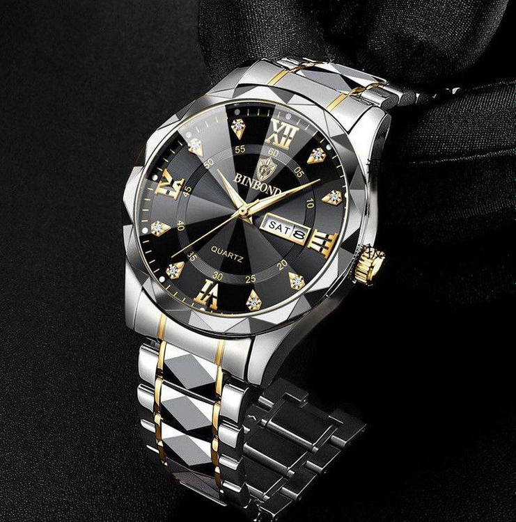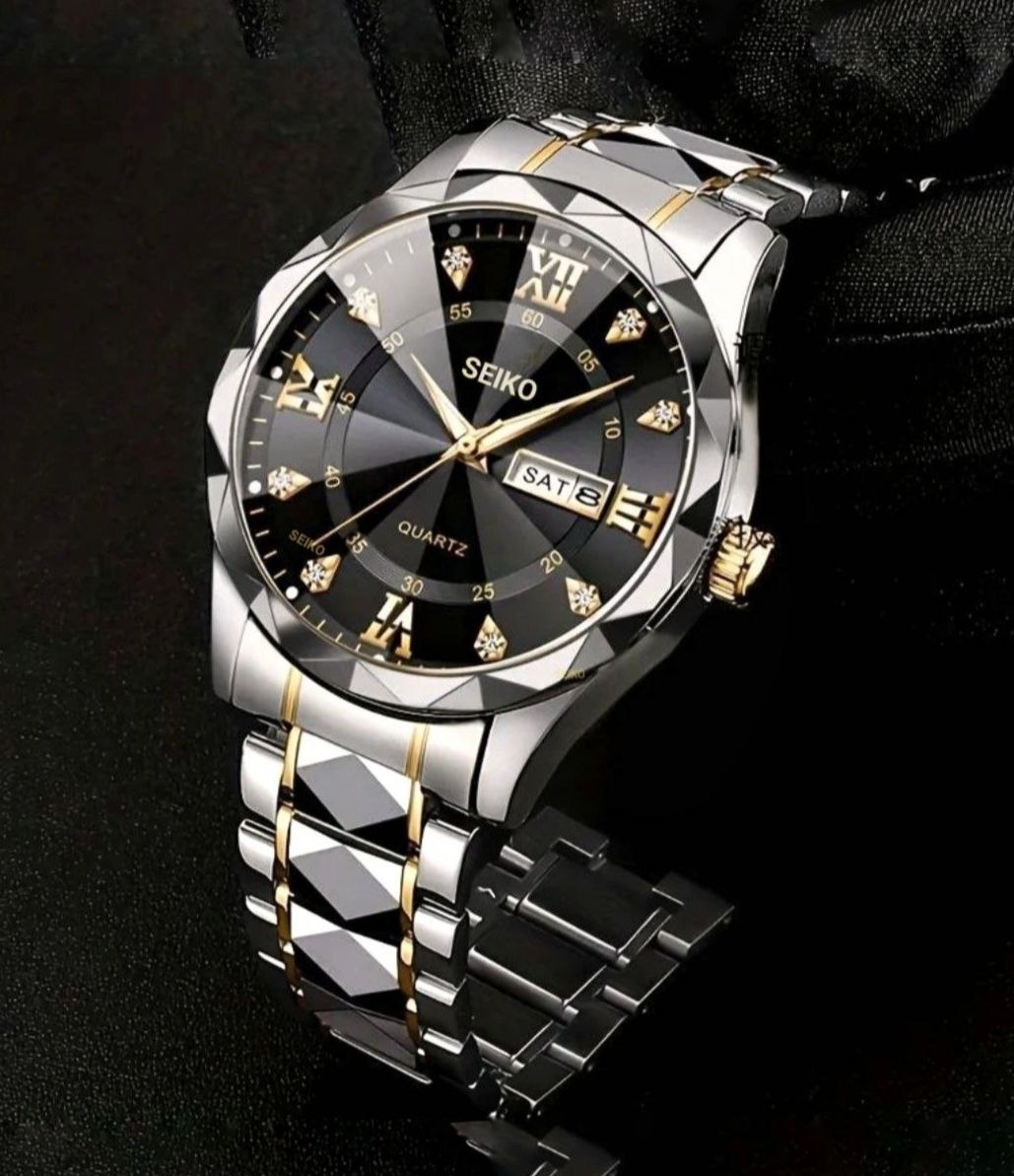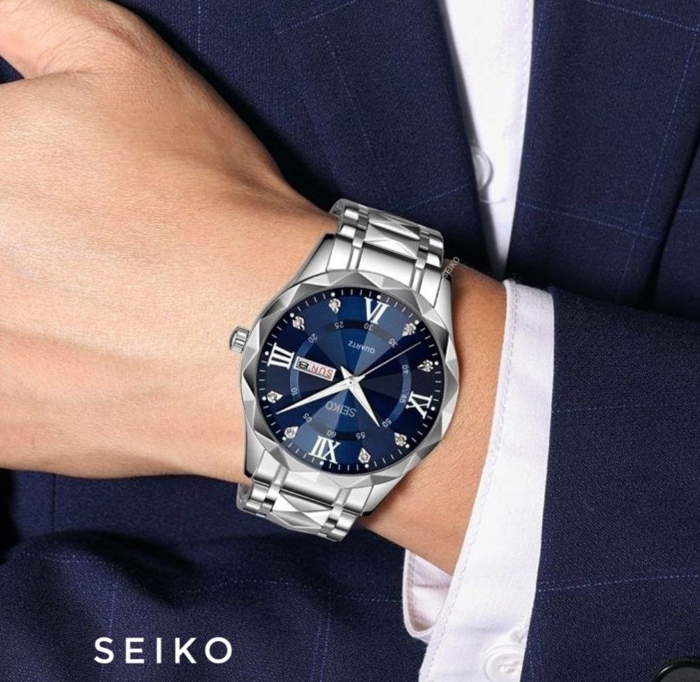 دارای روزشمار ایام ماه و هفته بند استیل طرح الماس تراش شیشه کریستال سافایر قفل کلیپسی ضدآب