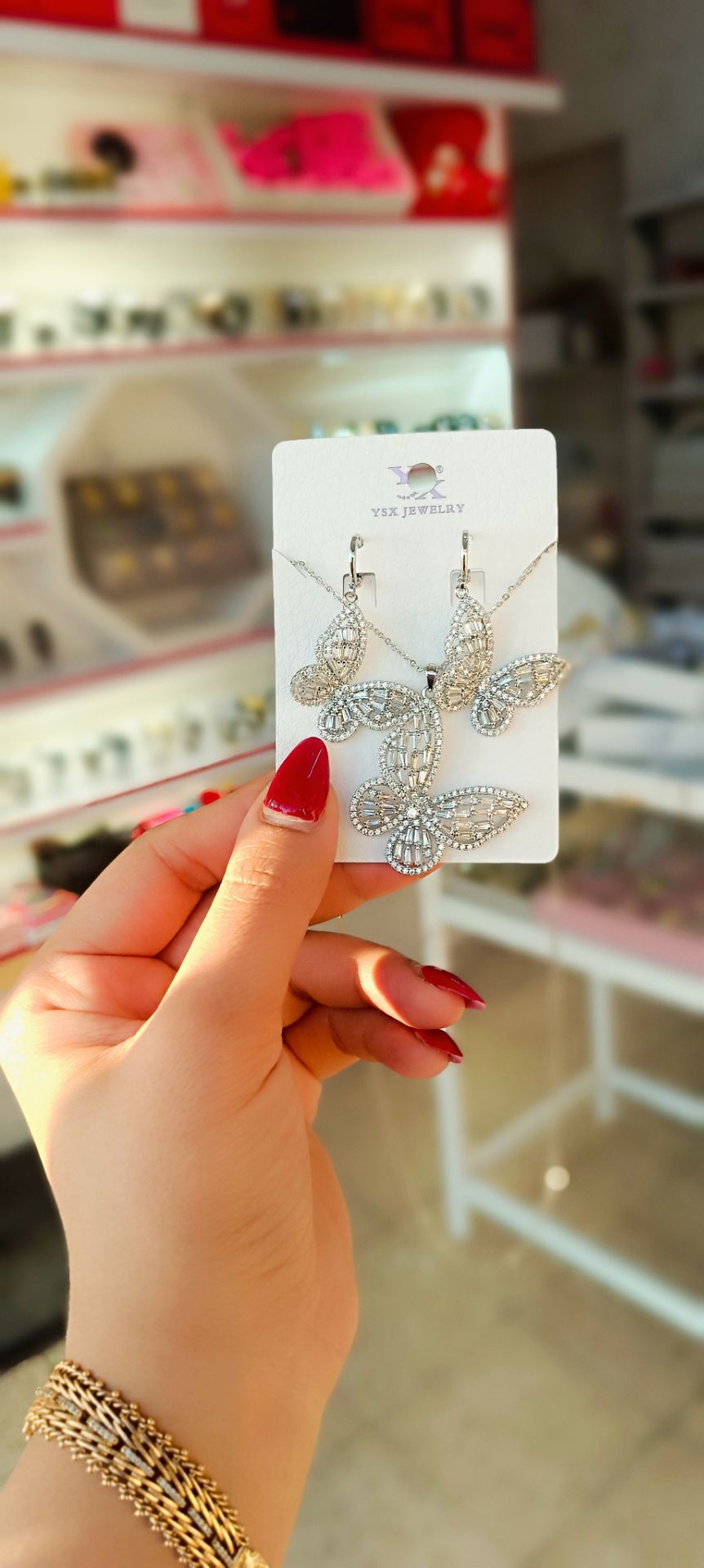 نیم ست جواهری پروانه ای رنگ ثابت مارک ysx کار بسیار شیک و جذاب در دورنگ نقره ای و طلایی