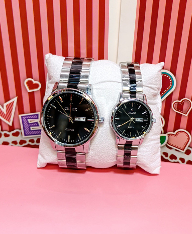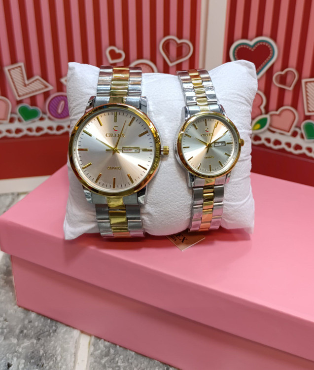 ساعتهای ست زنانه و مردانه ✅جنس بدنه فول استیل ✅قاب حکاکی شده ✅️ موتور عالی ✅️کیفیت عالی ✅️اصلی ✅تک موتوره ✅️رنگ ثابت ✅️تاریخ دار ✅️قفل پروانه ای ✅در 3رنگ مختلف