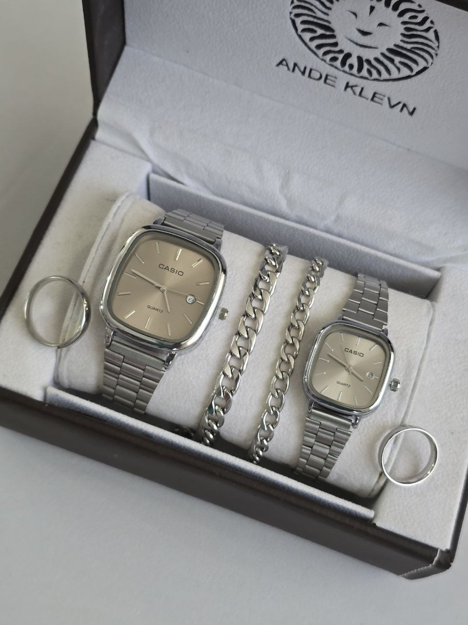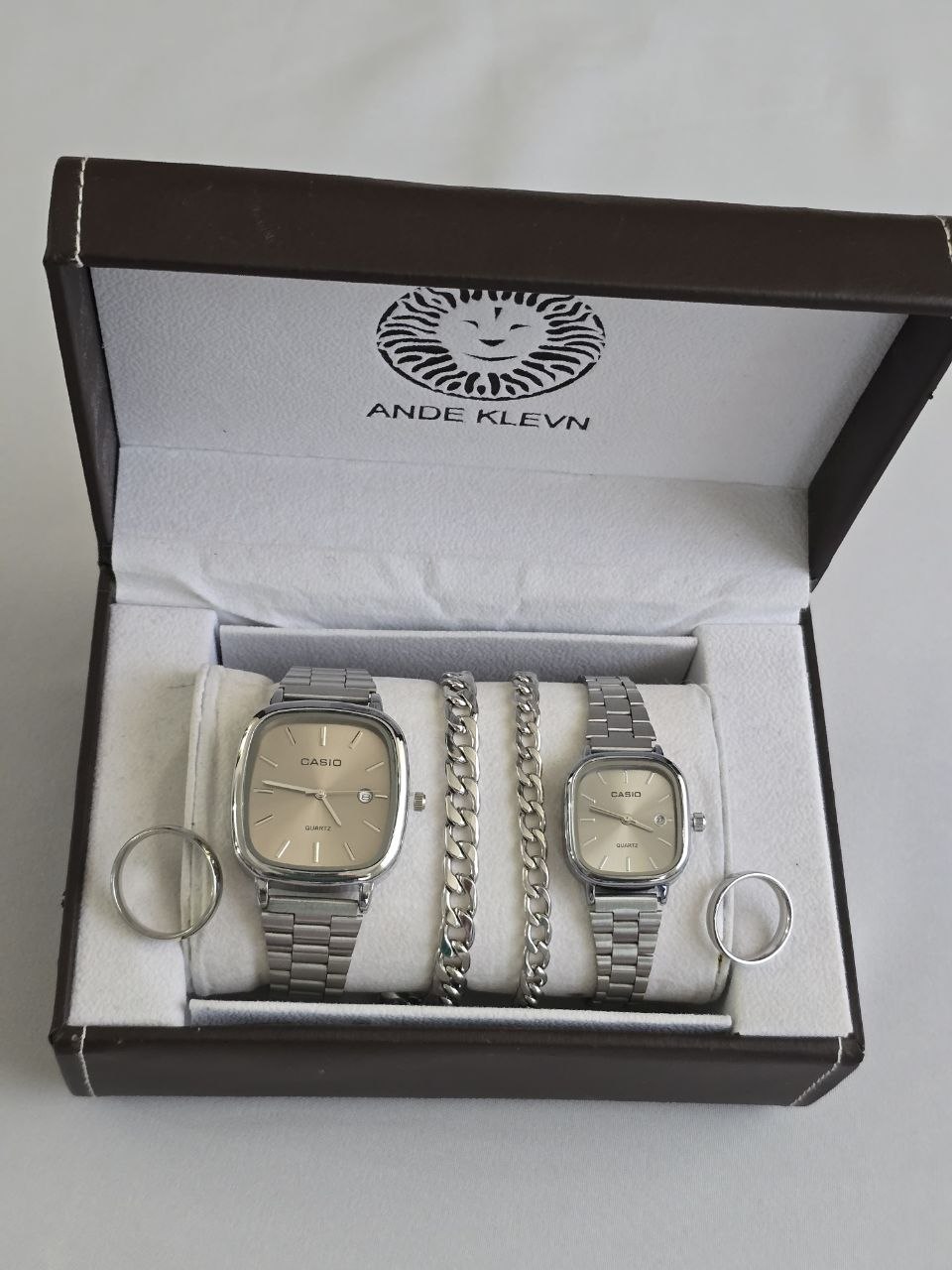 دارای: دو عدد ساعت دو عدد دستبند و دو عدد انگشتر