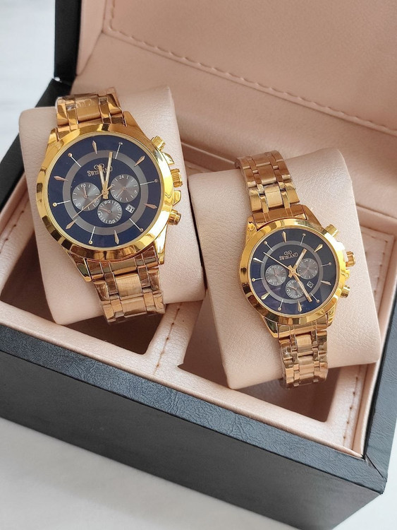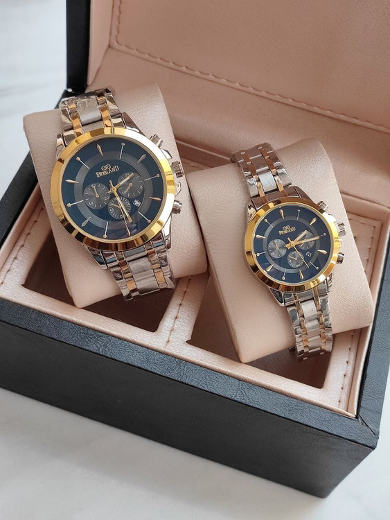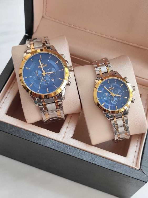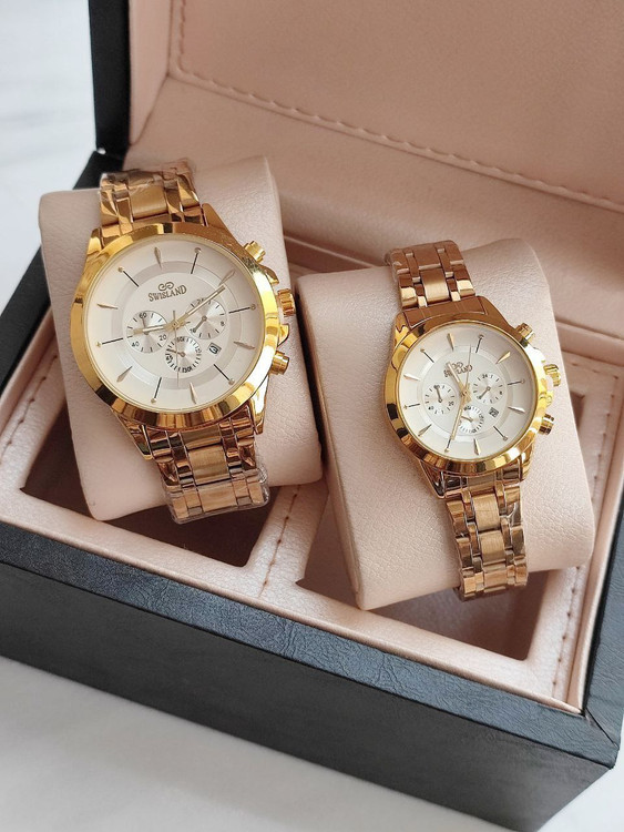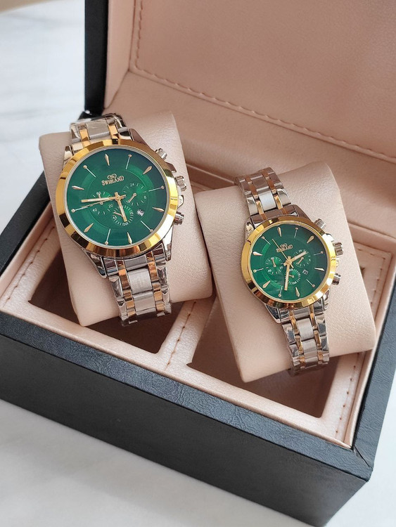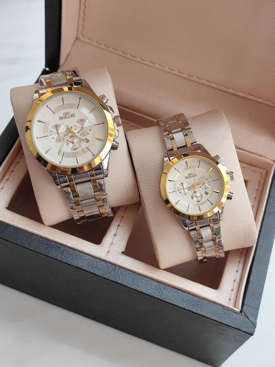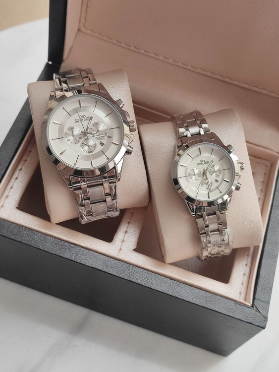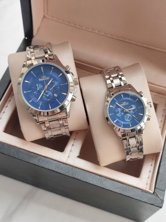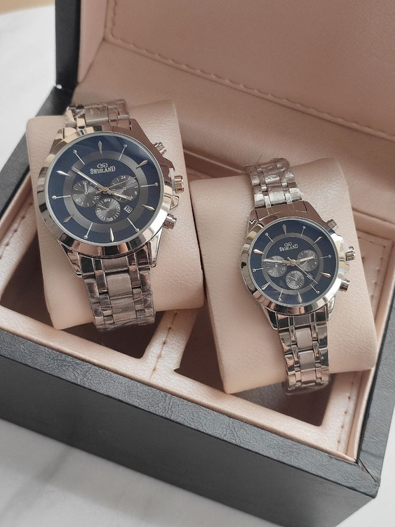ست ساعت فلزی مارک سویسلند swisland 5305707865 تقویم دار قفل ضامن دار موتور با کیفیت طرح سه موتوره قاب و بند استیل کیفیت بسیار خوب همراه با جعبه شیک