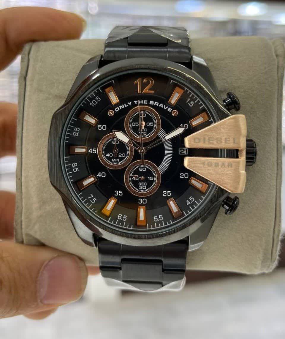 ❌ساعت دیزل شاخدار DIESEL اصلی ONLساعت مچی مردانه برند دیزل DIESEL سه موتوره فعال موتور کرنوگراف موتور شرکتی ضدآب دارای روزشمار بند و قفل استیل رنگ ثابت شیشه کریستال حک لوگو بر روی قفل و سردسته