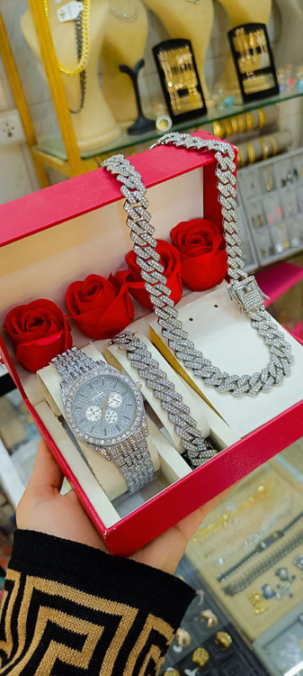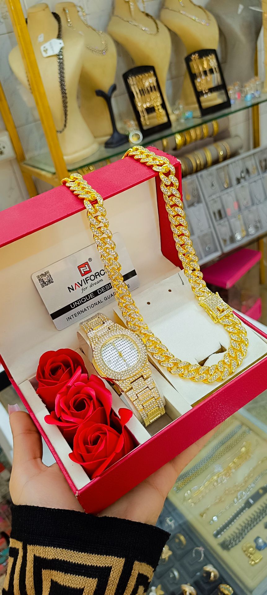 کالکشن جدید فول نگین😍😍 🌹ساعت اسپرت طرح رولکس فول نگین 🌹همراه دستبند و گردنبند فول نگین استیل 🌹کیفیت عالی گ