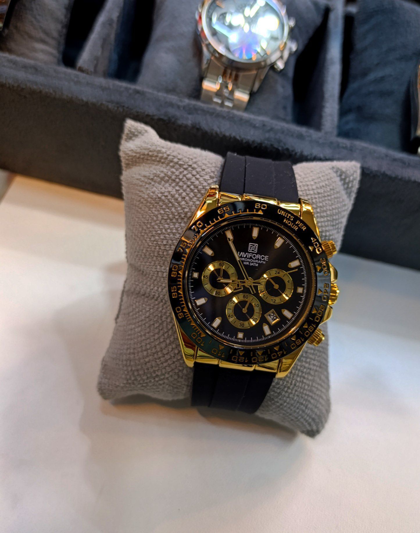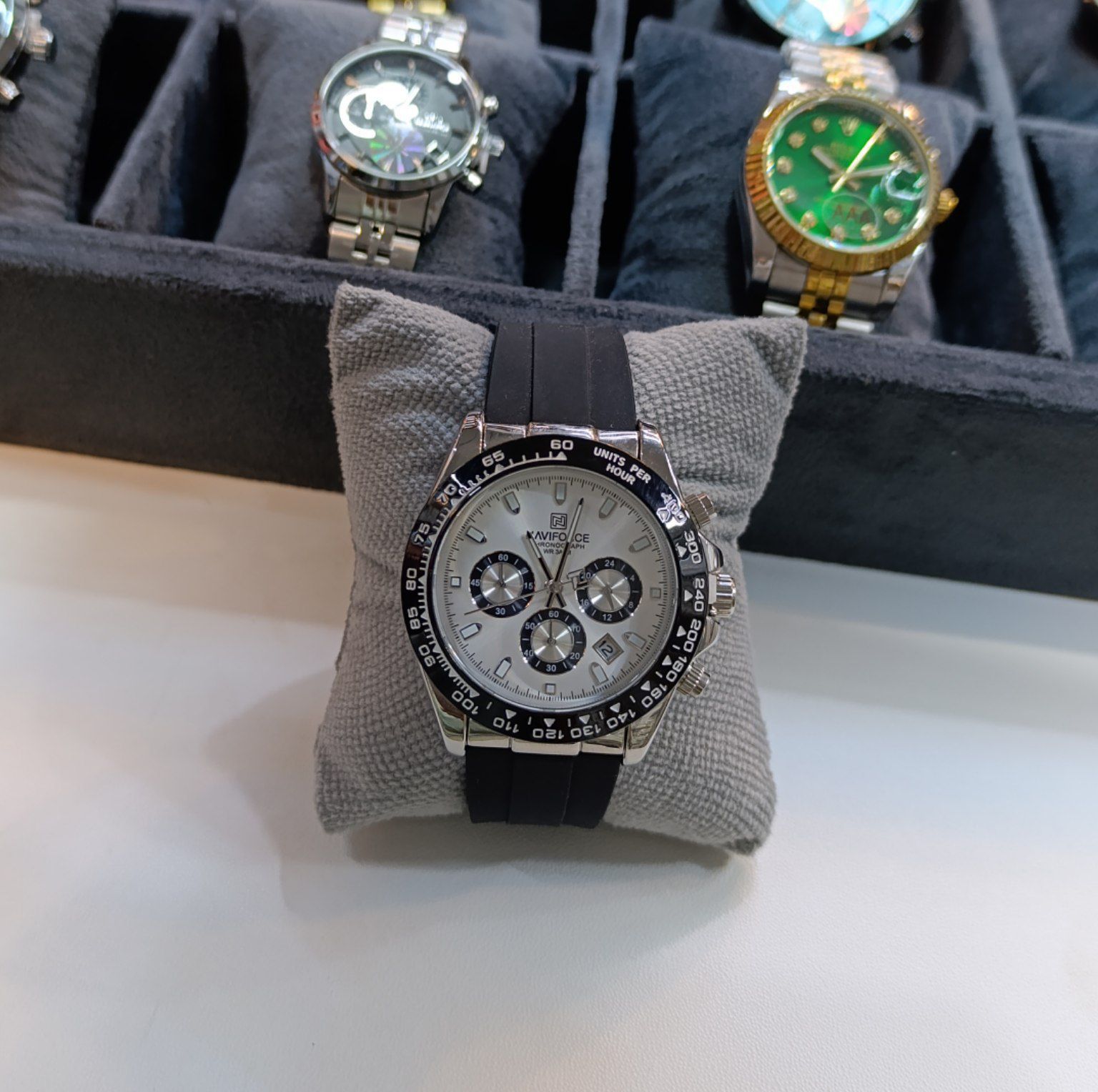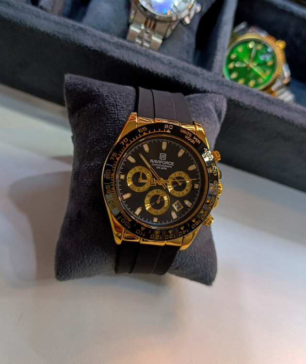 ساعت ناوی فورس مردانه ✅صفحه طرح دار عقربه ای شب تاب قابلیت ✅نمایش 24ساعته تاریخ شمار ✅سه موتوره ✅شیشه معدنی ✅کرنوگراف ✅جنس بدنه فلز ✅ضد حساسیت ✅ضد آب در حد پاشیدن آب ✅اسم برند پشت قاب حک شده ✅ گارانتی یکساله موتور ✅رنگ بند سیلیکونی ✅نوع قفل بند سگکی ساده