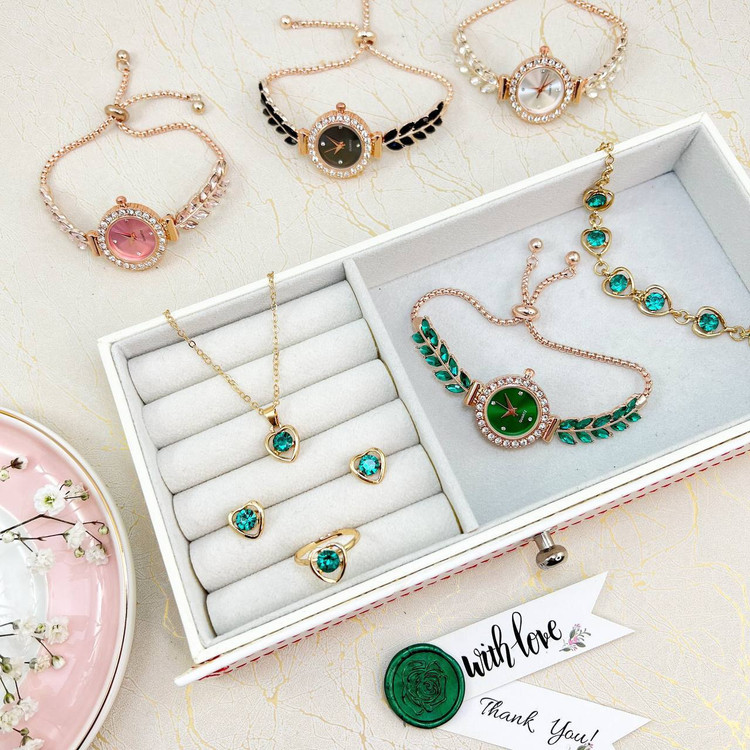 ➕ست هدیه: دستبند، گردنبند، انگشتر، گوشواره 💍
