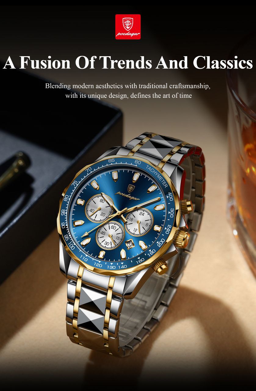 پیشنهاد ویژه ساعتکده تعداد محدود POEDAGAR اورجینال Model: Gentleman برای آقایان موتور شرکتی A++ ۳ موتور فعال کرنوگراف دارای روزشمار بند استیل طرح الماسی قفل استیل کلیپسی شیشه کریستال ضدخش ضدآب 3Atm ❌۳
