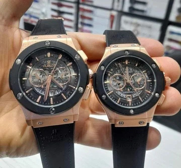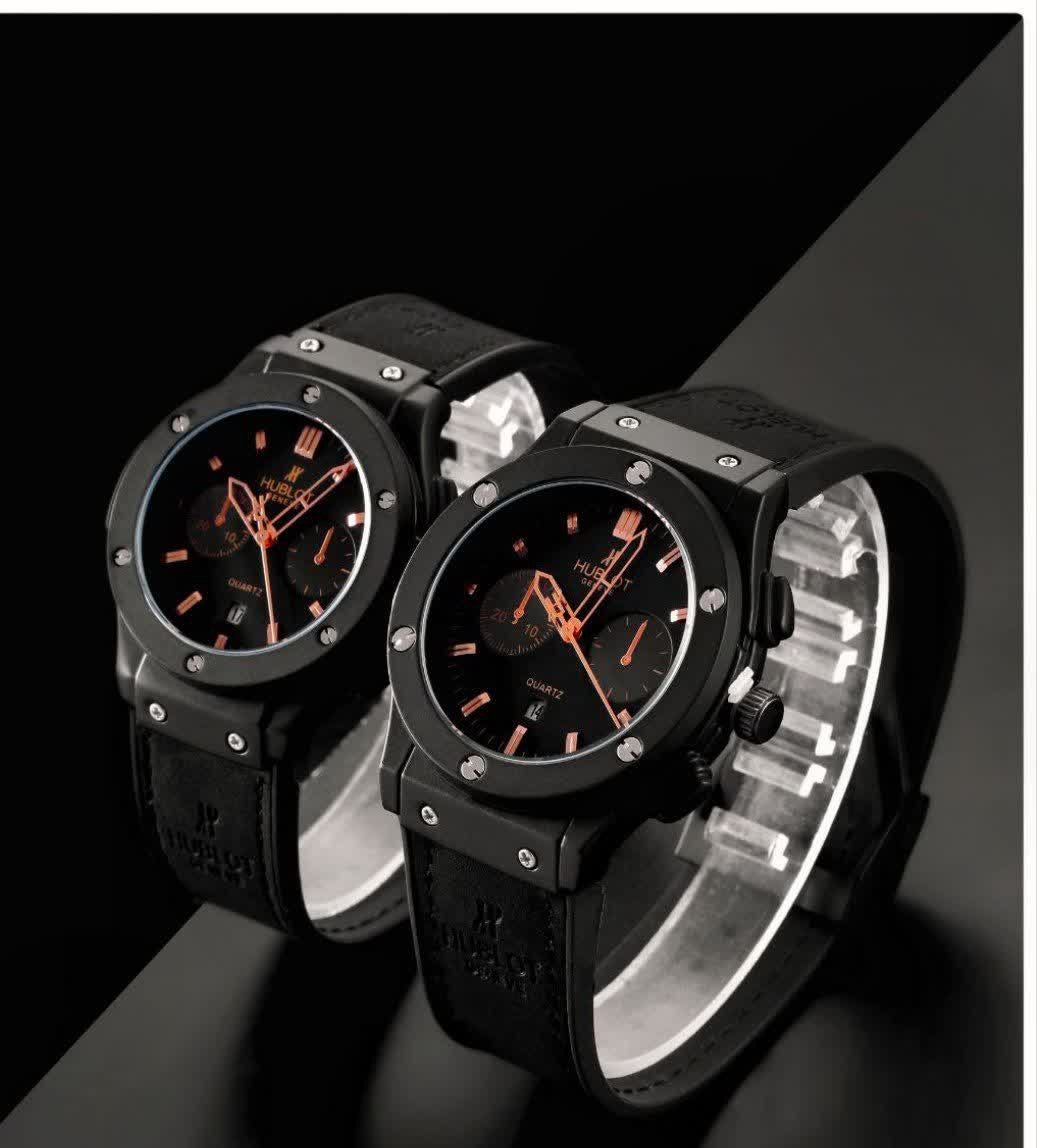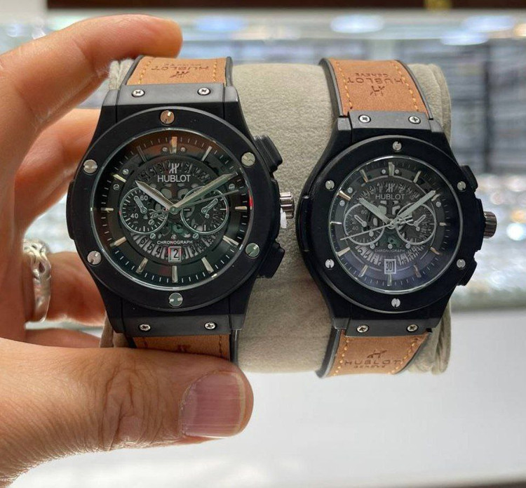Hublot BigBang ساعت ست هابلوت طرح بیگبنگ موتور شرکتی دارای روزشمار بند رابر رویه مخملی حک شده آنتی آلرژی قاب فلزی مات قاب پشت استیل رنگ ثابت ضد آب قفل استیل کلیپسی هابلوت