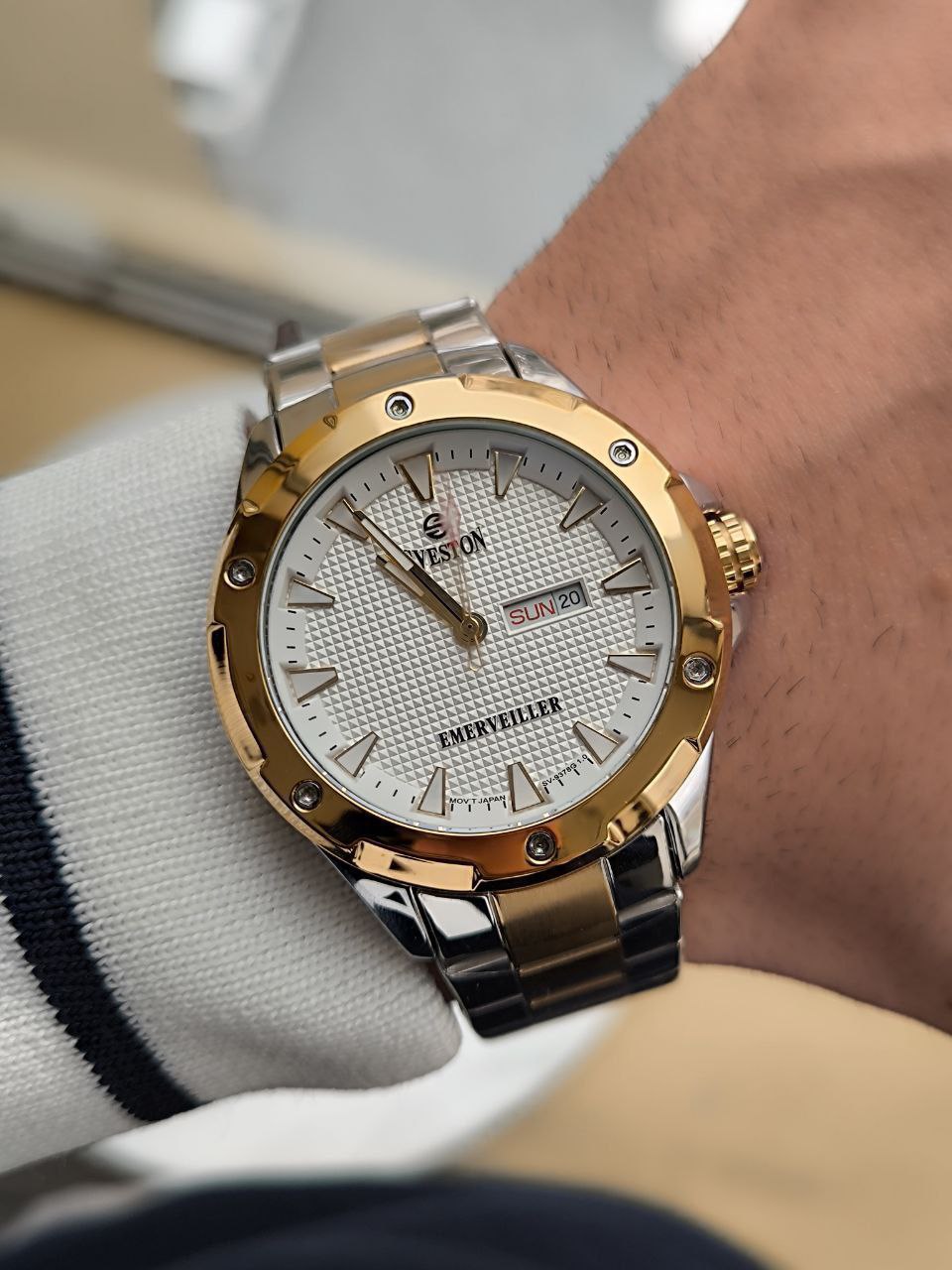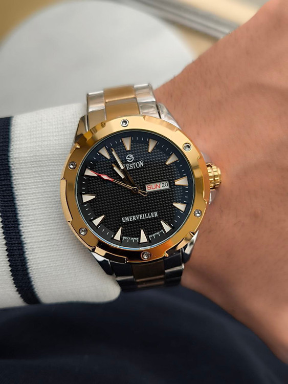ساعت مردانه مارک سویستن SVESTON 185020007036 موتور ژاپن دو تاریخه رنگ ثابت دو تقویم دار قاب و بند استیل کیفیت بسیار عالی حک مارک روی قفل همراه با جعبه
