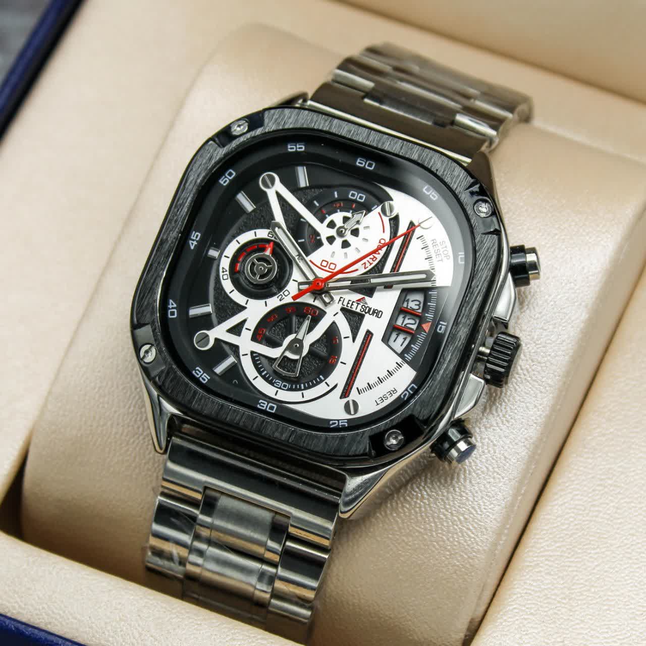 ساعت مچی مردانه FLEET SQUAD ✅موتور ژاپن، هر سه موتور فعال ✅کرنوگراف، تقویم دار ✅بند استیل، قفل فشاری، رنگ ثابت ✅جعبه و پاکت شرکتی